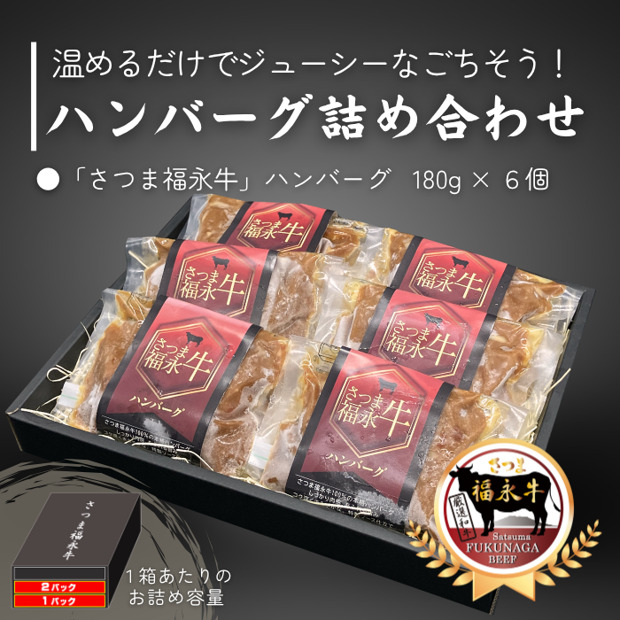 さつま福永牛100%ハンバーグ詰め合わせセット (6個入り) ***鹿児島県産黒毛和牛 さつま福永牛***