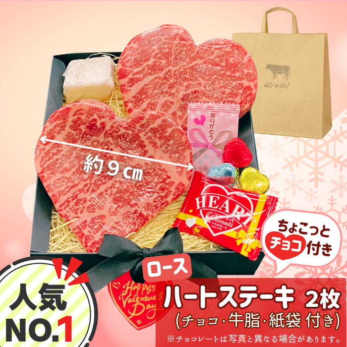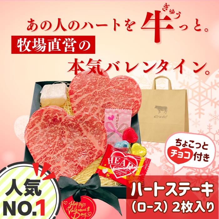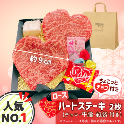 ハートステーキ2枚【チョコ・牛脂・紙袋付き】**鹿児島県産黒毛和牛 さつま福永牛**※2月9日以降のお届けとなります。