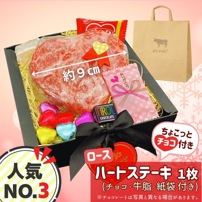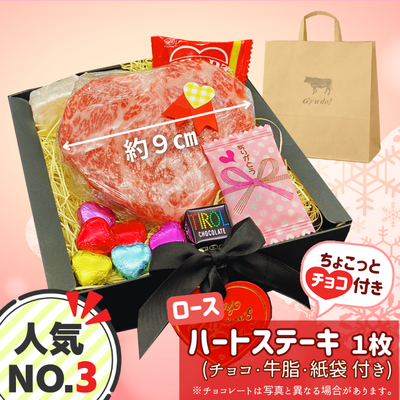ハートステーキ1枚【チョコ・牛脂・紙袋付き】**鹿児島県産黒毛和牛 さつま福永牛**※2月9日以降のお届けとなります。