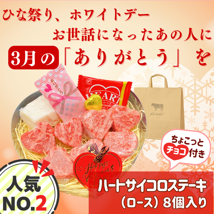 ハートサイコロステーキ8個入り【チョコ・牛脂・紙袋付き】**鹿児島県産黒毛和牛 さつま福永牛**
